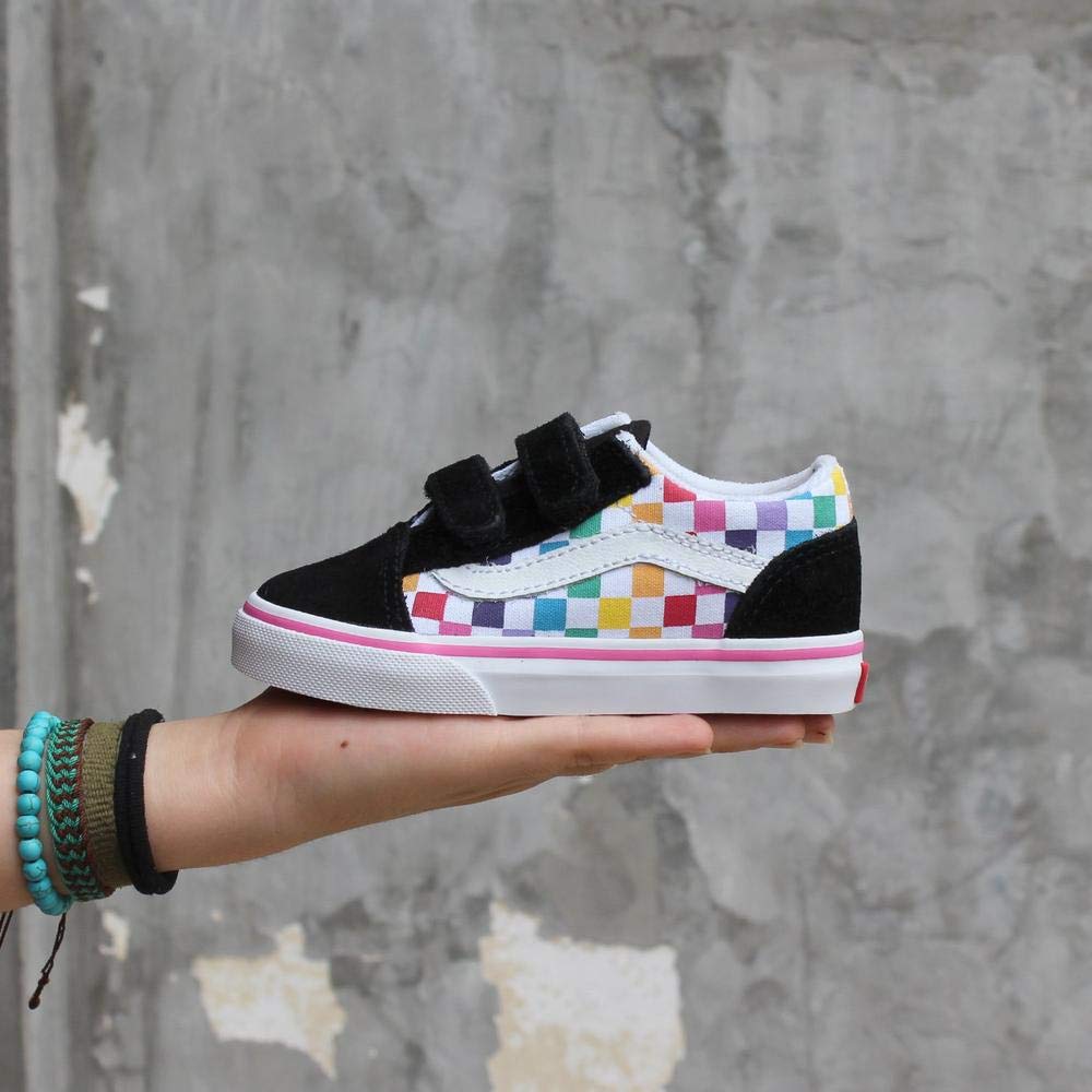 Vans Toddler Old Skool V INF Checkerboard Rainbow White Size 6