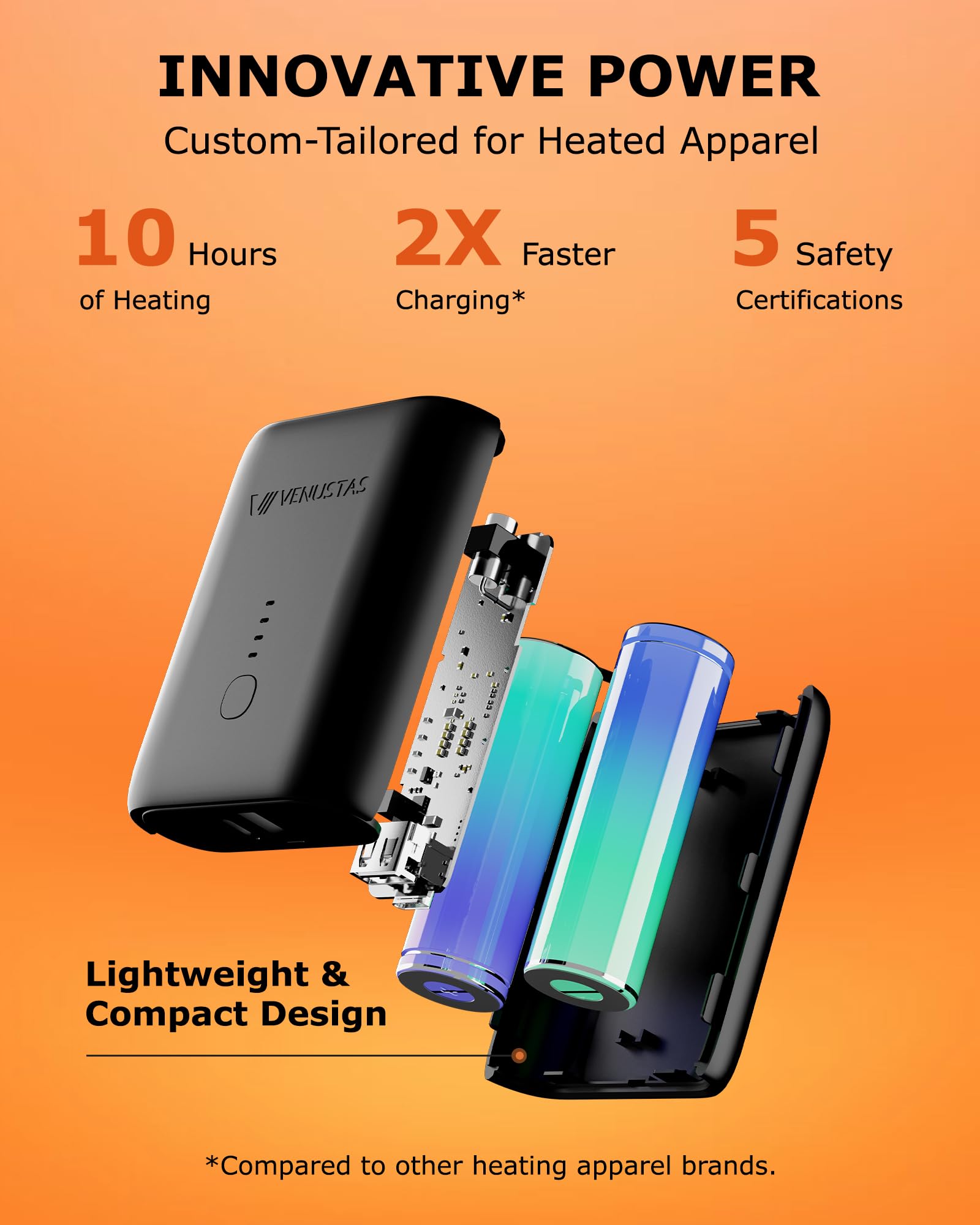 Venustas Men's Heated Jacket with Battery pack 7.4V, Windproof Electric Insulated Coat with Detachable Hood