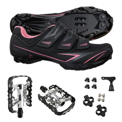 Venzo Women's MTB Bike Bicycle Cycling Shoes with Multi-Function Clip-Less Pedals & Cleats - Compatible with Shimano SPD & Crankbrother System