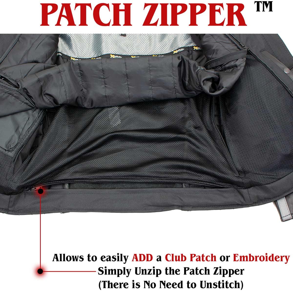 - Made of Premium Buffalo Milled 1.2-1.3mm Thick Leather|Front Zipper Closure|Stand-Up Collar with Snap Button Closure|Be Seen at Night with the Reflective Piping Material|2 Outside Zipper Pockets|Silver Stripe Accents with Quilted Leather Accents on Sides|Stay Cool with the Vented Panels: 2 Chest Vents and 1 Large Back Vent with Zipper Closure for Maximum Air Flow |Tapered Zippered Cuffs|Plain Back Panel Perfect for Patches or Embroidery|Silver Genuine YKK Zippers - Known for Longevity and Durability|Fully Removable Quilted Zip Out Liner|Conceal and Carry Your Piece with Dual Inside Left and Right Storage Pockets (Can Be Used as Regular Large Storage Pockets If You Don’t Carry)|Patented Interior ‘Patch Access’ Zipper Openings Making Patch Sewing Easier|Patch Access Technology Allows to Easily Add a Patch or Embroidery|Inside Media Pocket with Wire Feed|Built in Hanging Loop|Comfort and Features by Xelement Bike Gear Always Going the Extra Distance