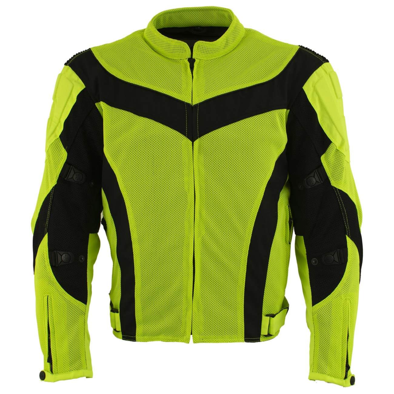 Xelement CF-6019-66 Men's 'Invasion' Neon Green Textile Motorcycle Jacket wit X-Armor Protection - X-Large