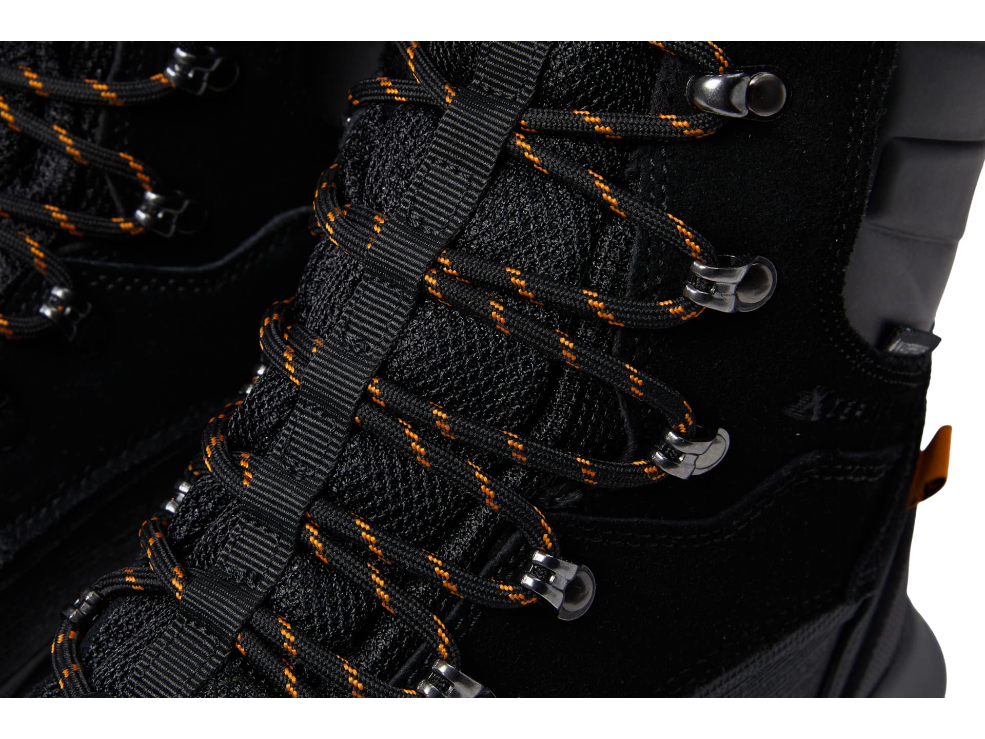 - Cold weather boot showcases a textile, suede, and rubber upper.