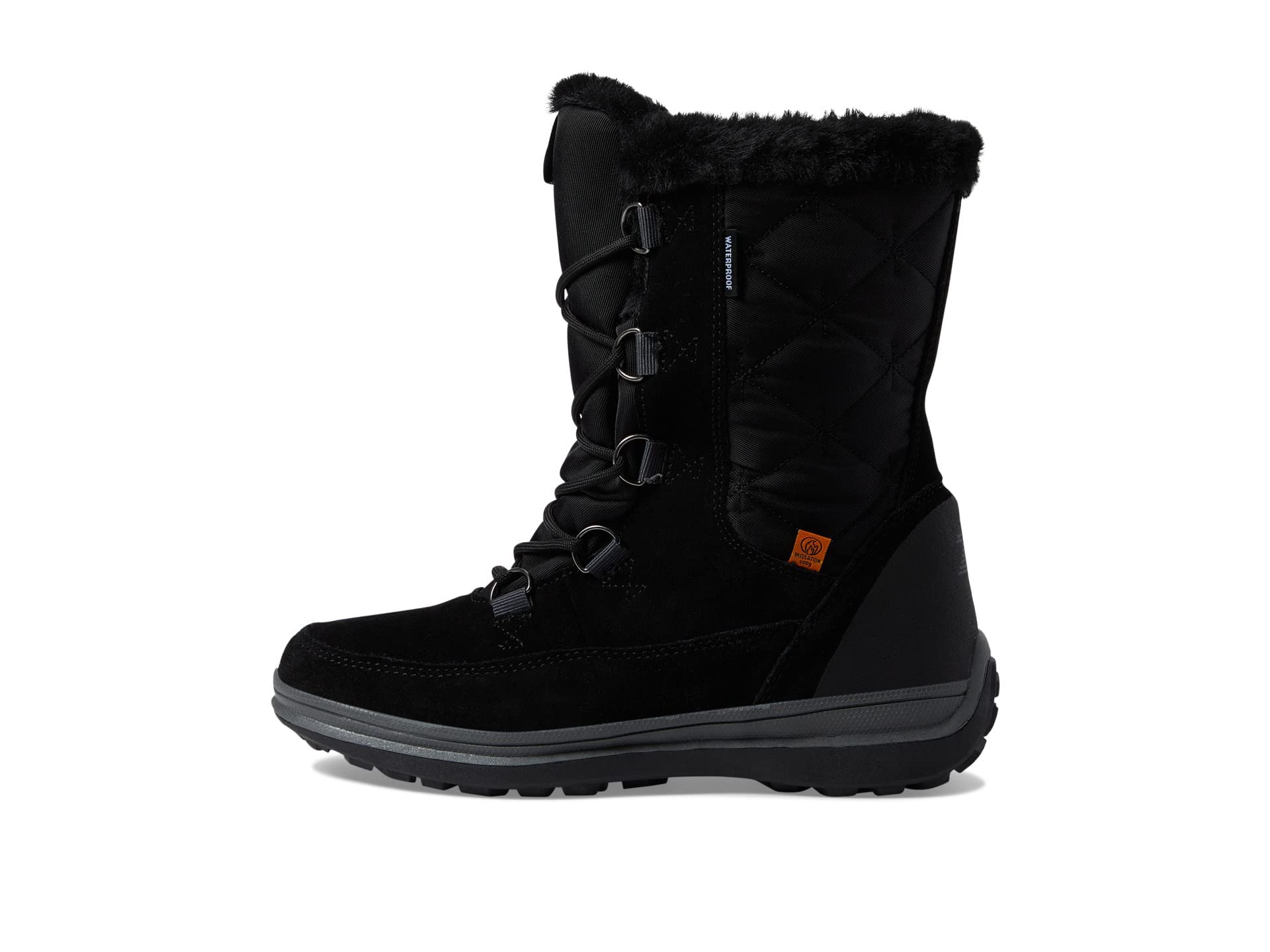 Featuring quilt and suede detailing on the upper, the ZeroXposur Snow Princess WP Hiker Boots keep your feet protected while you enjoy the snow. Suede and textile upper. Faux fur lining. Arch support insole. Lace-up closure. Waterproof design to protect you from the elements. Calf-length construction. D-ring eyelets for firm lacing. Signature brand detailing on the side of the upper and the tongue. Round toe design. Lug sole. Man-made outsole.