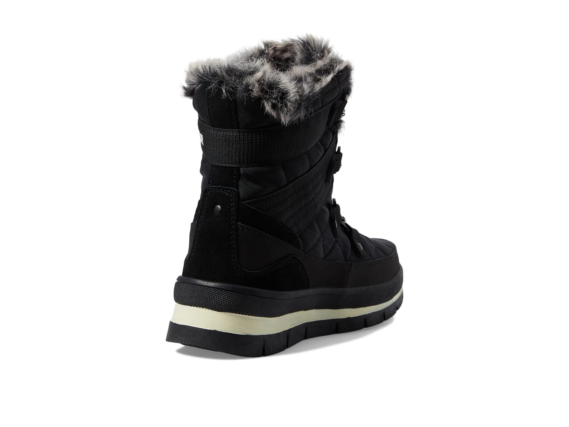 Secure lace-up closure has metal eyelets and a ball slide. Faux fur stylishly trims the topline.