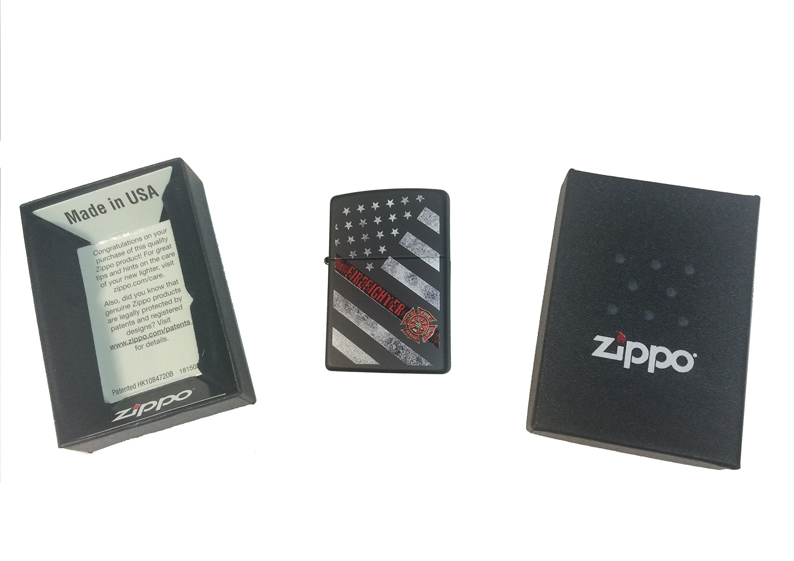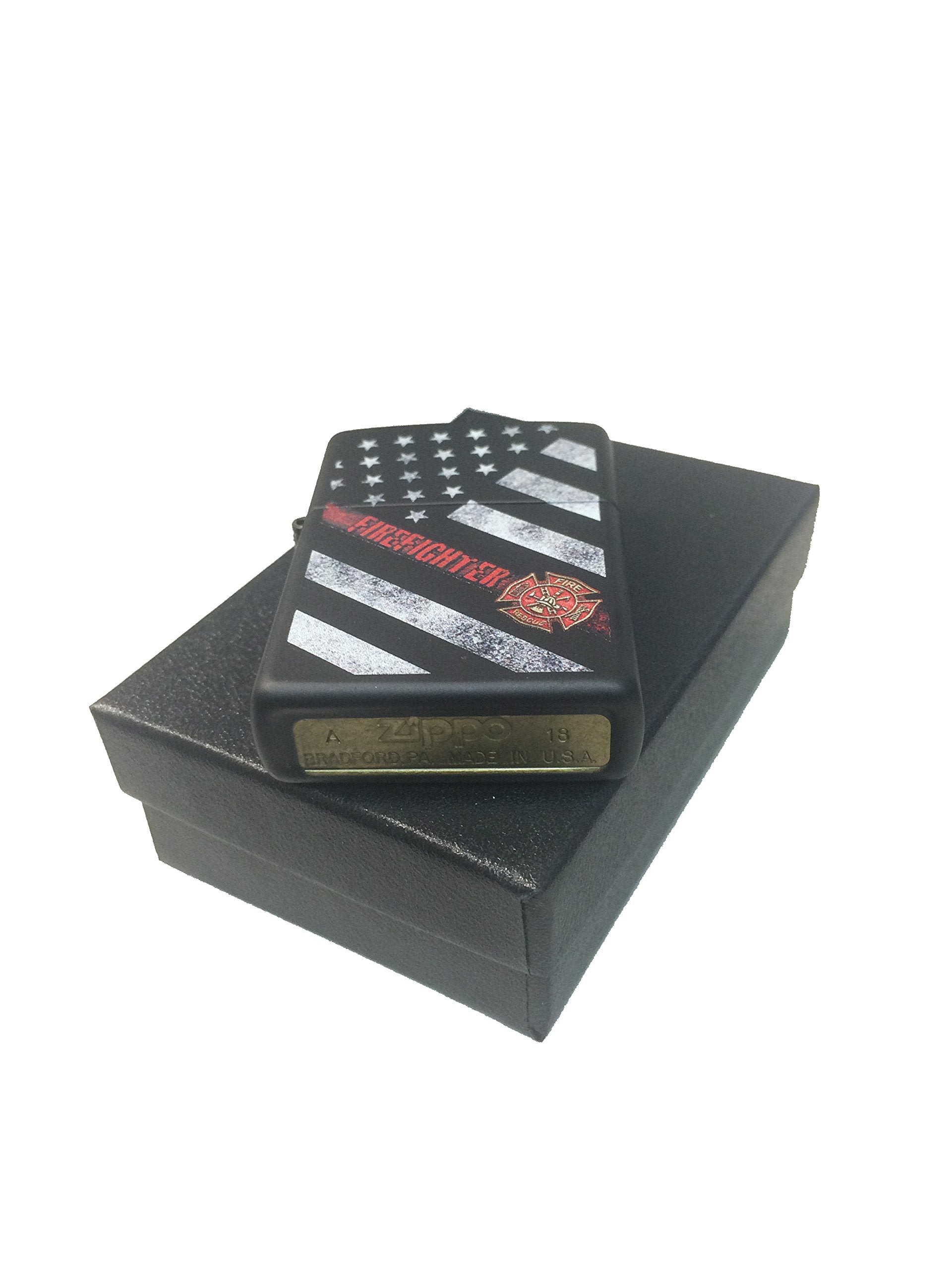 Zippo Lighter- Firefighter Flag Red Line Black Matte Windproof Lighter